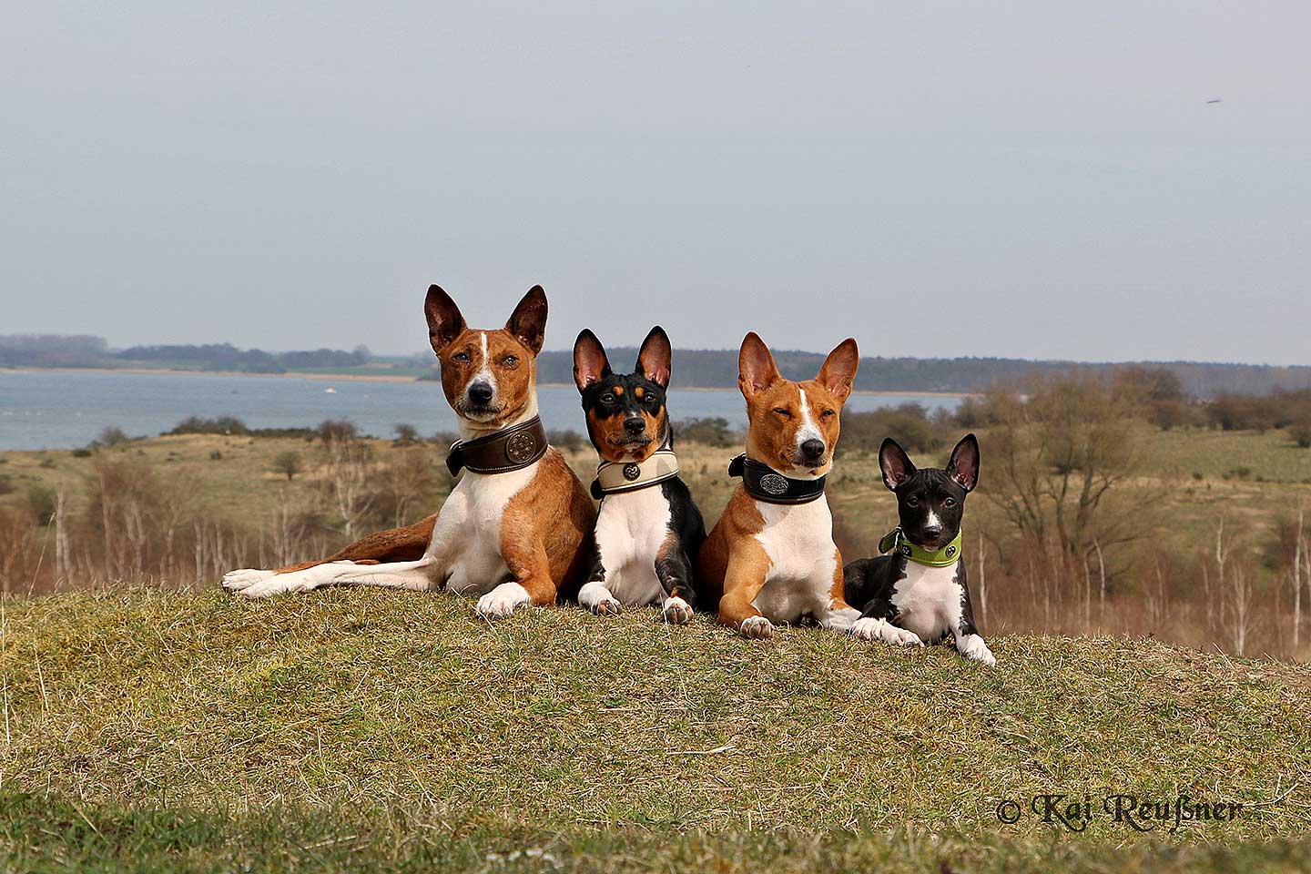 - Farbe: Rein schwarz und weiss; rot und weiss; schwarz, lohfarben und weiss mit lohfarbenen "Melonenkernen" (kleine Abzeichen über den Augen), lohfarbenem Fang und lohfarbenen Backen (tricolor); schwarz; lohfarben und weiss (fula-black); gestromt (brindle): schwarze Streifen auf rotem Grund, je klarer die Streifen abgegrenzt sind, desto besser. Das Weiss soll an Pfoten, Brust und Rutenspitze sein. Weisse Läufe, Blesse und ein weisser Halsring sind fakultativ.