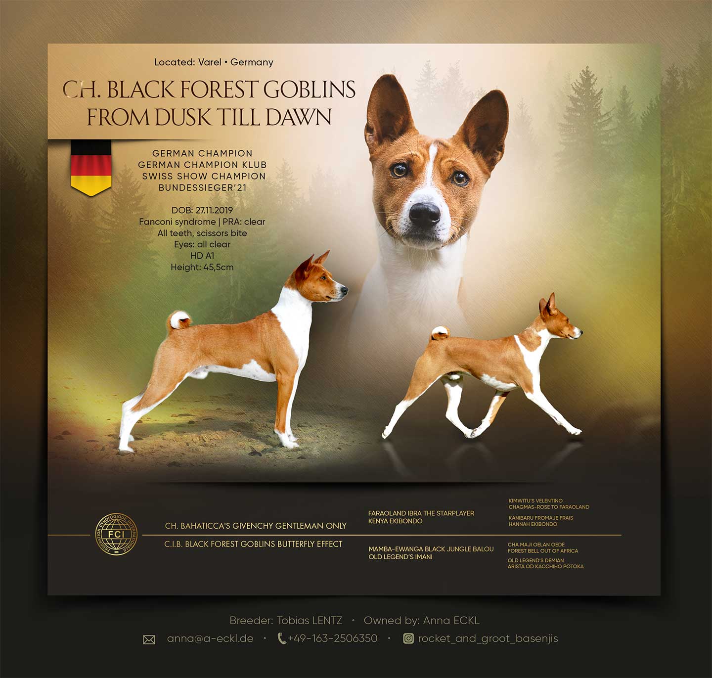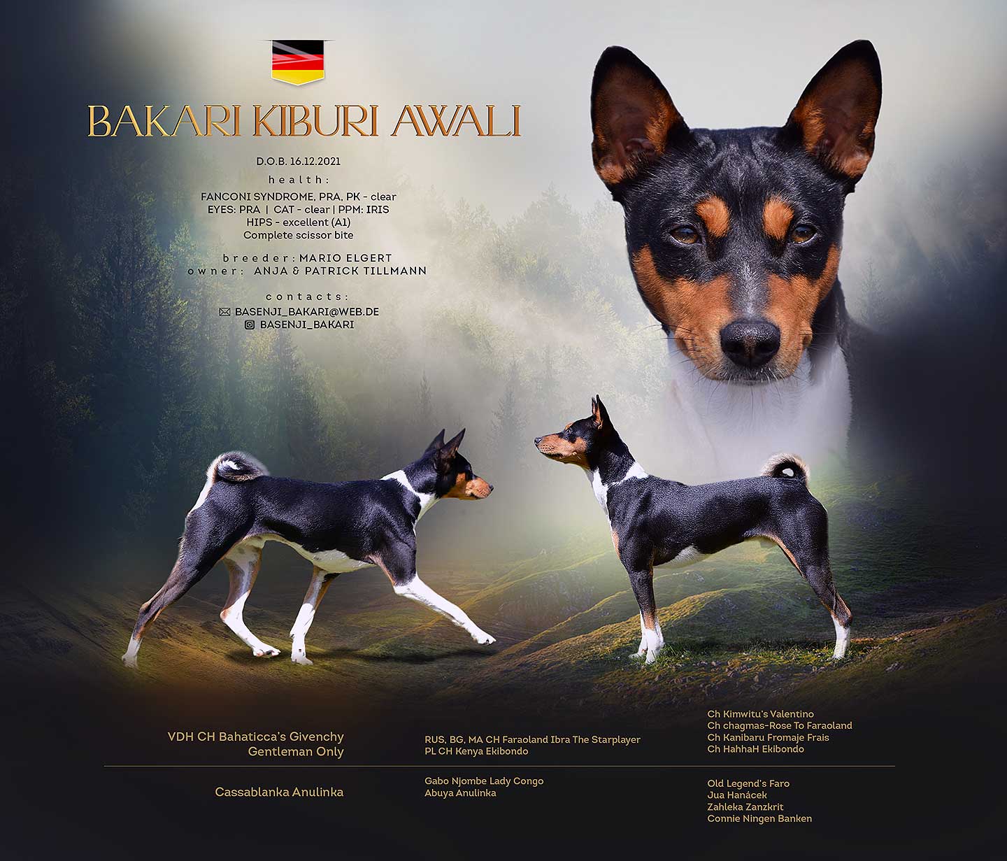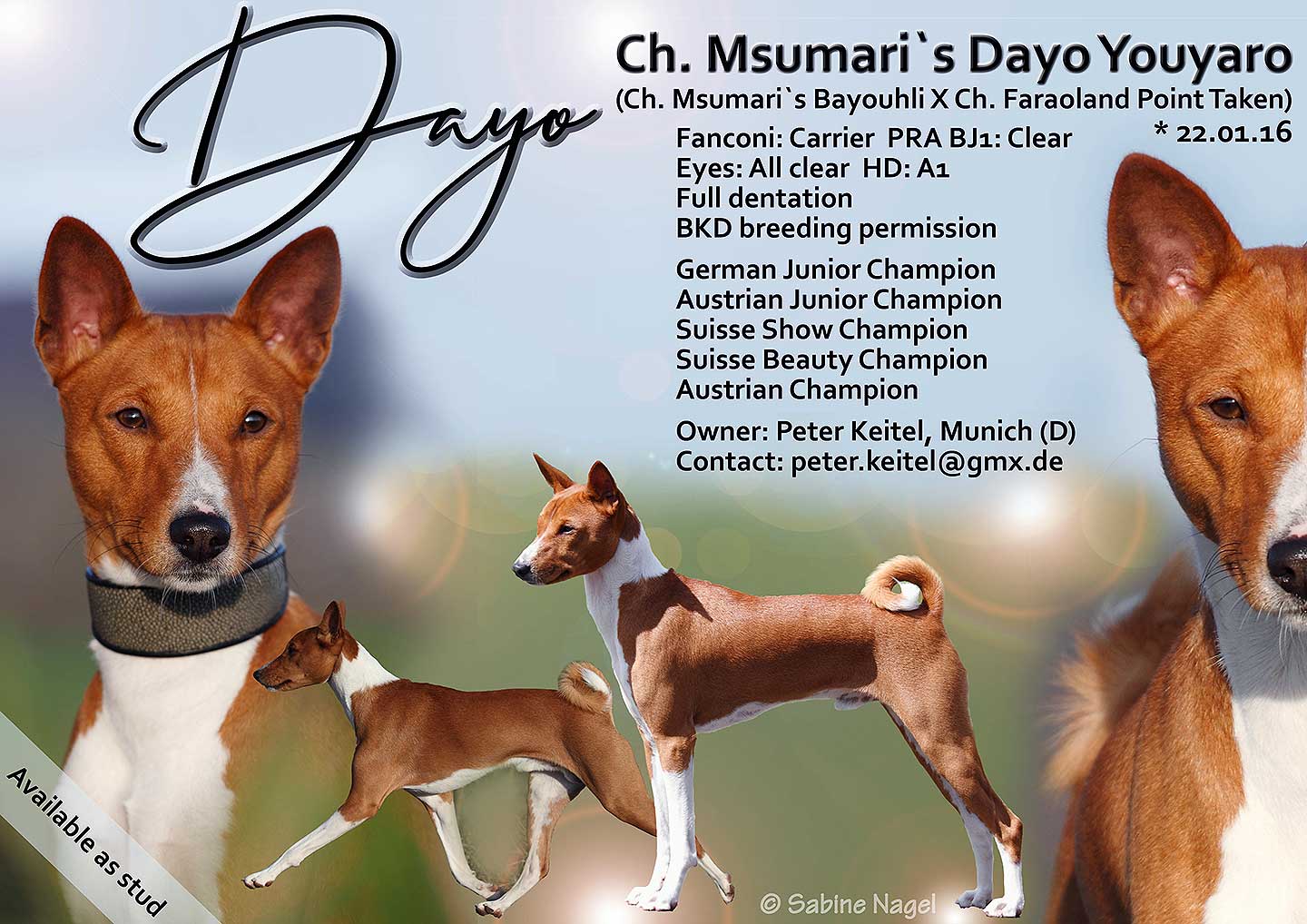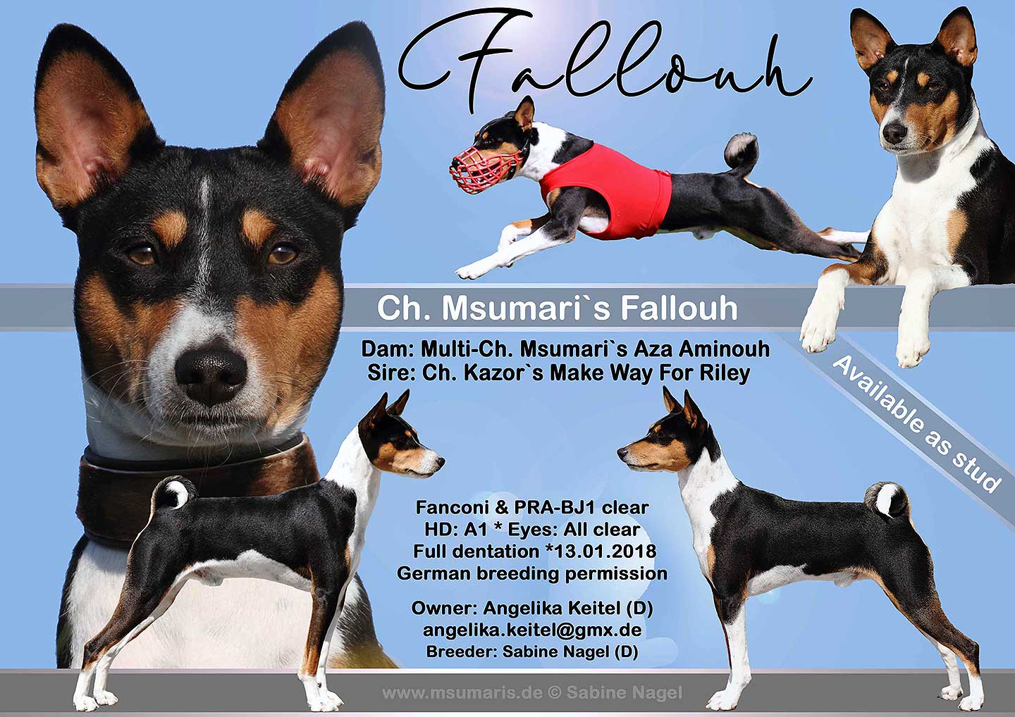 Eine komplette Liste der im BKD zur Zucht zugelassenen Deckrüden kann beim Hauptzuchtwart Noel Baaser unter Hauptzuchtwart@basenji-klub.de angefordert werden!